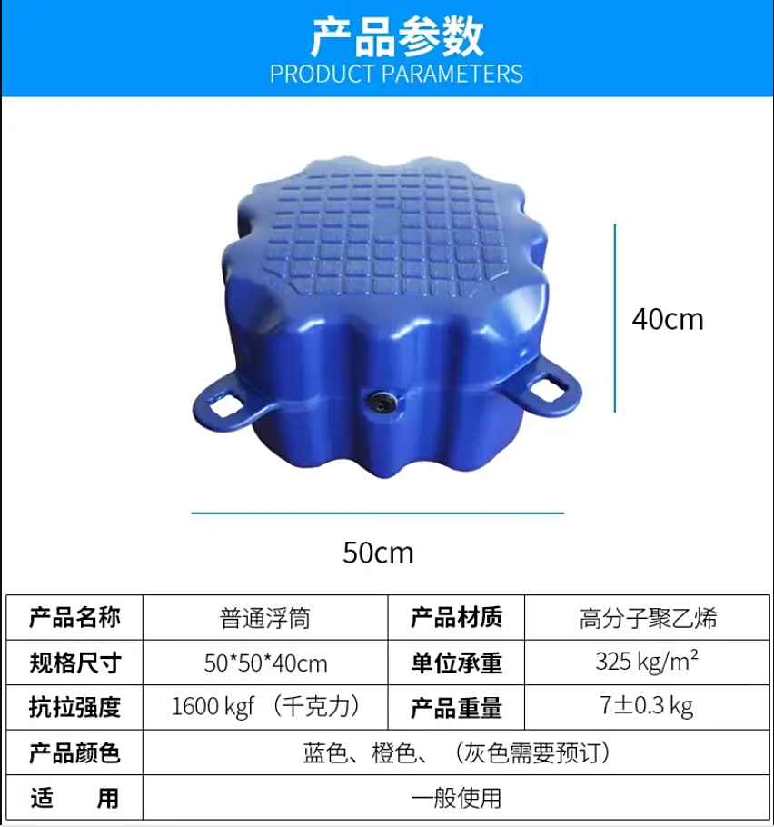 所 在 地: 浙江杭州拱墅区 更新日期: 2026-01-29 详细信息| 询价留言品牌:山河甲 型号:500x500x400mm 加工定制:是 材质:PE 用途:水上平台、浮桥 加工定制:是 -